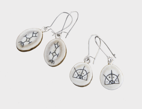 Reindeer-antler, engraved old sámi symbol. Silver hook. The colours of the antler vary from natural white to dark grey. The shape of the hooks can vary.