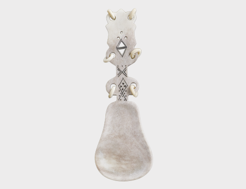 Made of reindeer-antler, engraved by hand. Lenght approx. 11cm. Natural variety of the colour of the horn.