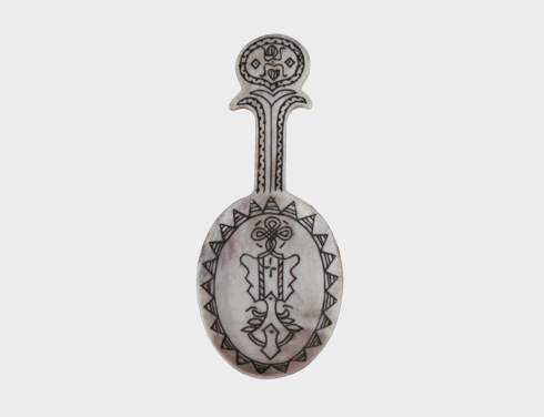 Made of reindeer-antler, engraved by hand. Lenght approx. 9 cm. Natural variety of the colour of the horn.