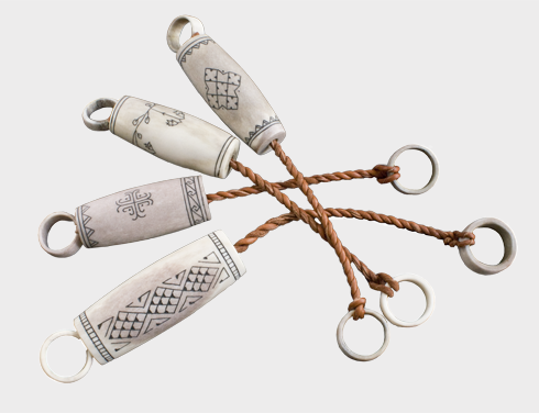Made of reindeer-antler. Contains 1-2 sewing needles and thread. Individual decoration. Natural variety of the colour of the horn.