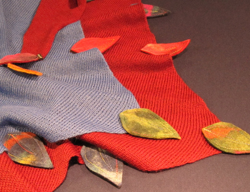 Triangle scarf made by Anne Mäkelä. 100% wool, decorated with felt leafs.